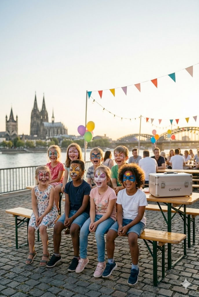 • Confetti Kinderschminken ist mehr als Farbe im Gesicht: Es ist ein kleiner Glücksmoment, der in Erinnerung bleibt – dein persönlicher Konfetti-Moment in Köln.